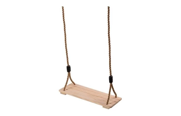 Schommel heen en weer op deze schommel Zwier heen en weer op deze houten schommelplank. Laat je duwen of misschien kan jij al wel zelf schommelen! Hoe hoog ga jij? De afmetingen van de plank zijn 42 x 5 x 130 cm met een maximale draagkracht van 75 kg. Schommelplank hout Alert is geschikt voor kinderen vanaf drie jaar. Â