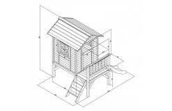 Speelhuis Lodge XL heeft een platformhoogte van 57 cm en een totale hoogte van 189 cm. Het speelhuis is 167 cm lang en 240 cm breed. Met een binnenmaat van 97 x 89 cm en een nokhoogte van ca. 128 cm is Lodge XL een klein houten speelhuis.