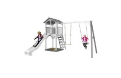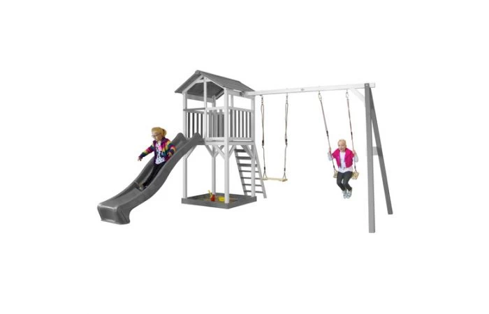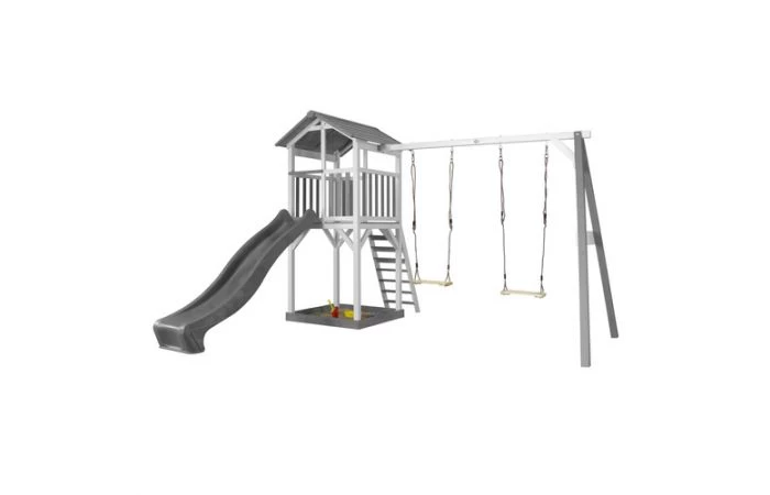 AXI Beach Tower Speeltoren met Dubbele Schommel Grijs/wit – Glijbaan in verschillende kleuren: