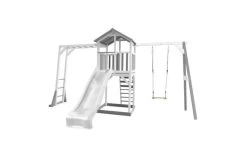 AXI Beach Tower Speeltoren met Klimrek en Enkele Schommel Grijs/wit – Glijbaan in verschillende kleuren: