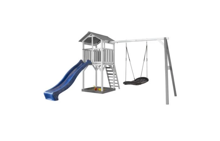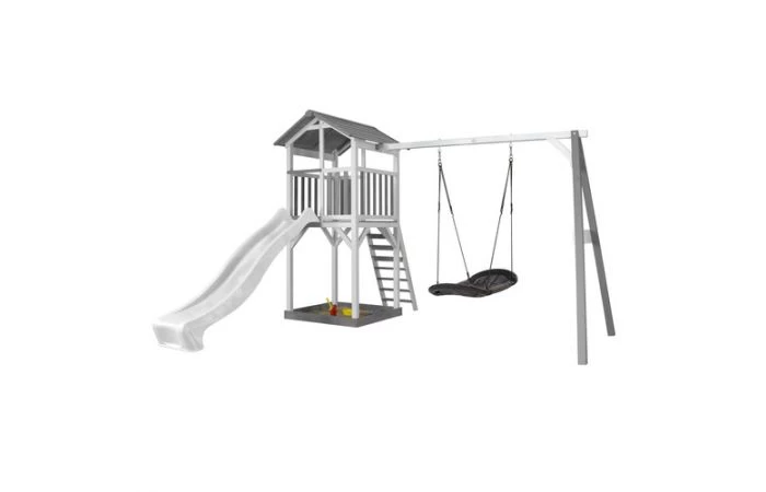 AXI Beach Tower Speeltoren met Roxy Nestschommel Grijs/wit – Glijbaan in verschillende kleuren: