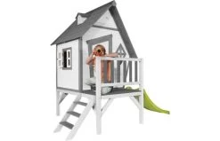 Dit houten speelhuisje van Sunny Toys heeft alle aspecten wat de Cabin ook heeft, maar is uitgebreid met een glijbaan en een veranda. Het speelhuisje is te betreden dankzij de aangebouwde houten trap. Dankzij de glijbaan kan je supersnel weer naar beneden. Het speelhuisje is uit te breiden met een verrekijker. De kleurstelling van het houten speelhuis Cabin XL is bruin – naturel. Dankzij deze kleuren heeft het huisje een rustige uitstraling en zal hij prachtig staan in elke tuin.
