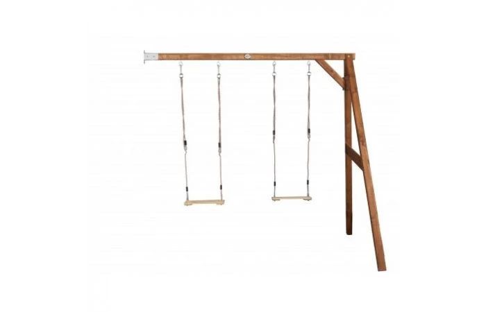 AXI Dubbele schommel muurbevestiging. Producttype: Schommelset voor speelplaatsen, Soort stoel: Plat zitje, Materiaal van de zitting: Hout, Aanbevolen leeftijd (min): 3 jaar, Kleur van het product: Bruin. Gewicht: 21 kg
