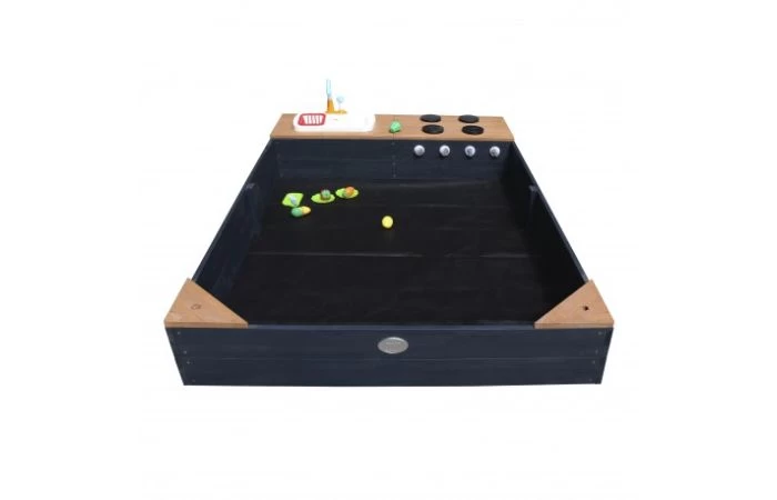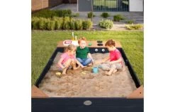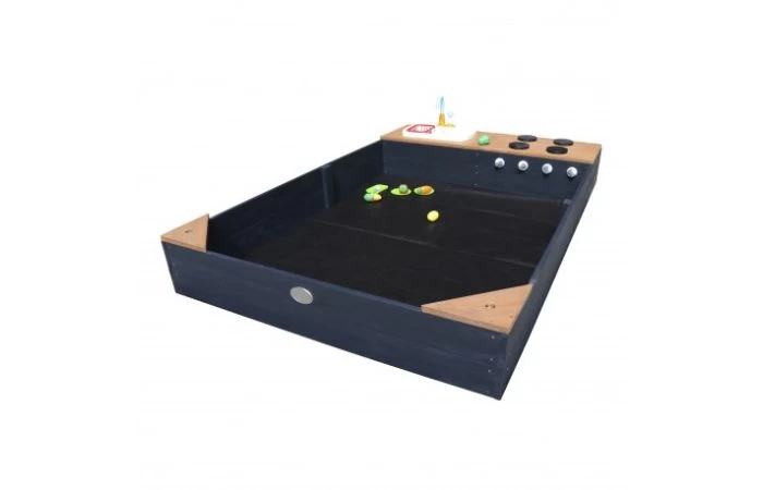 De Kelly zandbak met speelkeuken wastafel in antraciet/bruin van AXI is een toevoeging voor iedere tuin! Kinderen kunnen zich in de zandbak helemaal uitleven en lekker aan de slag gaan in de speelkeuken. Dankzij de meegeleverde accessoires zoals bordjes, snijplank en groente en fruit kunnen je kinderen in de speelkeuken de sterren van de hemel koken. Groenten snijden, koken en bakken worden zo letterlijk kinderspel! Het groente en fruit kunnen via klittenband door de helft “gesneden” worden. Met de draaiknoppen kunnen kinderen ook met het fornuis spelen. Ideaal voor het koken van de groenten! Kelly is gemaakt van stabiel en duurzaam FSC hout en is voorzien van een handig afdekzeil en gronddoek. Hierdoor blijft het zand in de zandbak veilig en schoon. De kookplaat kan eenvoudig worden afgenomen waardoor extra bergruimte voor speelgoed ontstaat. Zo heb je altijd het speelgoed netjes opgeborgen en in de buurt! Twee hoekplankjes van de zandbak zijn voorzien van een gat om een parasol (optioneel) in te plaatsen, zodat je kinderen ook in de schaduw kunnen spelen als de zon schijnt. De zandbak is ruim en kan gevuld worden met ongeveer 350 kg zand (niet inbegrepen). Geschikt voor kinderen van 3 jaar en ouder.