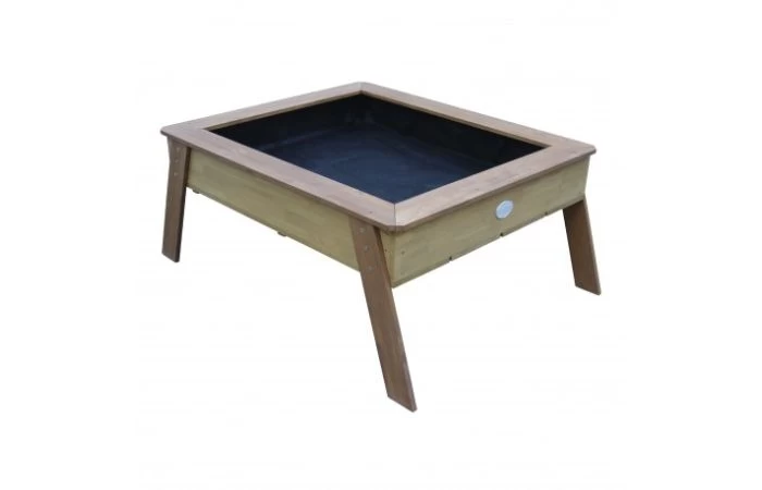De zand- en kweektafel is gemaakt van FSC 100% hemlock hout en is daarnaast afkomstig van duurzaam beheerde bossen en daarom ook een milieubewuste keuze. Deze houtsoort splintert niet en is van nature bestand tegen weersinvloeden zoals regen en dus resistent tegen houtrot. De tafel is ook nog eens behandeld met een watergedragen beits, zonder chemicaliën. Je hoeft de speeltafel voor gebruik dus niet te behandelen.