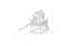 Via de trap kunnen ze omhoog klimmen om het huisje in te gaan en vervolgens van de lange glijbaan naar beneden roetsjen. En dan zijn ze nog niet uitgespeeld, want onder het speelhuis is ook nog een zandbak waar ze met z’n allen zandtaartjes kunt bakken. In dit speelhuis kunnen ze elkaar de mooiste geheimen vertellen. Zodra ze de ramen en deur dicht doen, kan niemand ze meer afluisteren! Liam is een veelzijdig houten speelhuis met een halfronde deur en ramen. De deur heeft een brievenbus waar kinderen post doorheen kunnen gooien als ze postbodetje spelen. Het speelhuisje is uitgevoerd in moderne bruin/witte kleuren welke perfect in iedere hedendaagse tuin passen. Liam speelhuis heeft een platformhoogte van 118 cm en is uitgevoerd met een grote glijbaan van 228 cm lang. Als de kinderen zijn uitgespeeld kan de zandbak eenvoudig worden afgedekt met de meegeleverde afdekhoes.