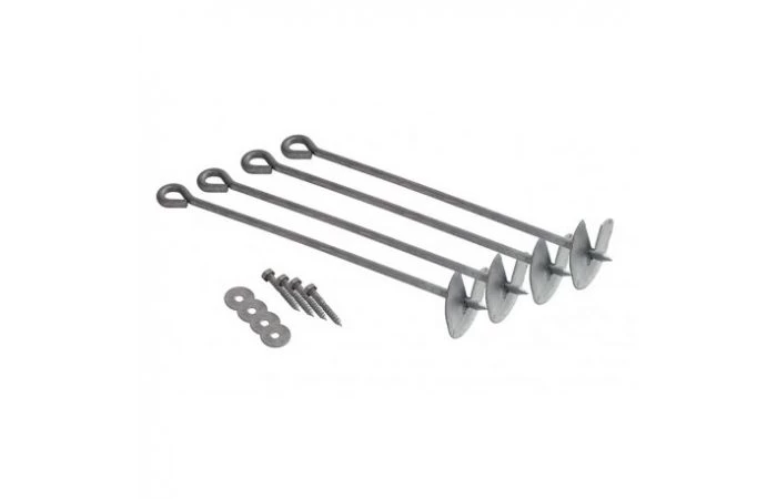 Het verankeringsset is voorzien van 4 grondankers die ontworpen zijn om houten speelhuizen en schommels vast in de grond te verankeren. De stalen staaf heeft een diameter van 12 mm. De totale lengte van het anker is 520 mm.