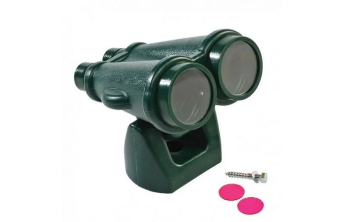 Deze verrekijker is een leuke toevoeging voor uw speelhuis. Het helpt de kinderen om volledig op te gaan in hun eigen speelwereld. Met deze verrekijker maakt u ieder speelhuisje of speeltoren tot een echte hut! De verrekijker heeft een paar kleine gele en een paar grote transparante lenzen. Ook wordt er een extra paar kleine, rooskleurige lenzen (reservelenzen) meegeleverd. Inclusief bevestigingsmateriaal en verbindingsstuk.