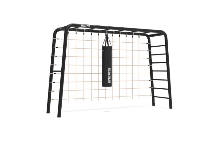 De basis voor dit concept is het sterke, robuuste frame. Deze heeft een modern en minimalistisch design en beschikt over een gepatenteerde buisverbinding. Het geheel staat stevig in de grond en vormt zo een solide basis voor allerlei toepassingen. Kies zelf of je voor de Large variant van 380 cm breed gaat of voor de Medium variant van 285 cm breed. De diepte en de hoogte van beide frames zijn gelijk. Namelijk 100 cm. diep en 245 cm. hoog. Voor de zijkanten van het frame kan je kiezen uit een trap of duikelrek of een combinatie van deze twee.