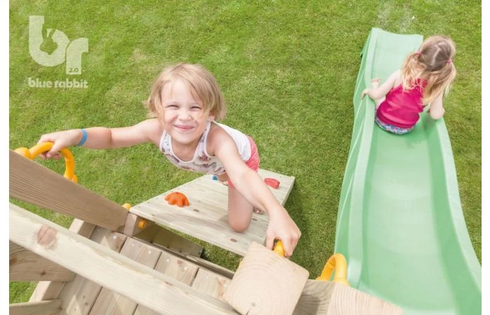 Kinderen kunnen naar hartenlust hun ouders imponeren door de @wall module te beklimmen. Het is een ware uitdaging om via de wand met klimstenen de speeltoren binnen te geraken! De @wall module vergroot het evenwichtsgevoel en verbetert de motoriek. En de kleurrijke klimstenen geven net dat beetje extra cachet aan je speeltoren.