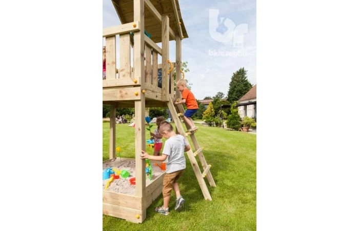 De Pagoda heeft het grootste platform in het hele aanbod van Blue Rabbit 2.0 (1,4m x 1,6m), en biedt de kinderen daardoor speelruimte in overvloed. Het geïntegreerd balkon dat als een uitkijkpunt gebruikt kan worden, verhoogt de speelwaarde van deze ruime toren aanzienlijk. De onderliggende zandbak biedt een enorme ruimte om te graven en zandkastelen te bouwen. De unieke Pagoda, die op een oude Chinese tempel lijkt, biedt gegarandeerd uren ontdekking en avontuur.