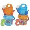 De set wordt geleverd met leuke accessoires; een gieter met sproeikop, een harkje, een schepje, 1 zandvormpje en een zeef.