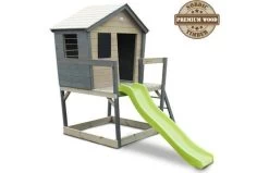 Het EXIT Aksent houten speelhuis in de kleur grijs is een stoer speelhuis met glijbaan en zandbak. Het houten speelhuis staat op poten, zodat je onder het huisje in de zandbak kunt spelen. Dankzij het strakke design en de natuurlijke uitstraling past het EXIT Aksent houten speelhuis in iedere tuin! Het Aksent houten speelhuis van EXIT Toys is gemaakt van FSC gecertificeerd vurenhout (FSC 100%, SCS-COC-000652-WH). Dit hout is afkomstig uit Scandinavië en is van hoogwaardige kwaliteit. Het EXIT vurenhout is onder hoge druk geïmpregneerd. Dit zorgt voor de langst mogelijke levensduur en het hout heeft geen verdere behandeling nodig. Maak lang en onbezorgd gebruik van het EXIT houten speelhuis!