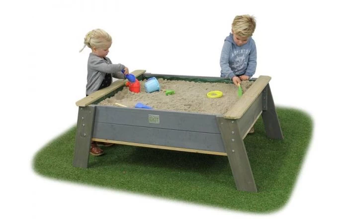 Doordat de EXIT Aksent Zandtafel XL op poten staat zijn er diverse voordelen – je kunt staand spelen en bent dus lekker actief in een fijne houding – doordat je rondom de tafel staat kun je met veel kinderen tegelijk spelen – minder toegankelijk voor (huis)dieren zoals kattenn- makkelijk schoon te vegen rondom de tafel. Als extra accessoire kunt u kiezen voor een set EXIT Tuingereedschap.