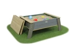 Door zijn afmetingen is hij ook nog eens makkelijk in uw tuin of op uw terras te plaatsen. Het blad is afneembaar waardoor kinderen het ene moment een zandkasteel kunnen bouwen en het andere moment, als het blad er weer op zit, heerlijk kunnen knutselen, bouwen of tekenen. Het meegeleverde worteldoek houdt het speelzand in de zandtafel.