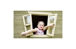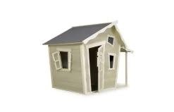 Het EXIT Crooky 150 houten speelhuis met veranda is een stoere ‘blokhut’ waarin kinderen urenlang speelplezier kunnen beleven. Dit houten speelhuis staat op de grond en heeft een veranda. De vooraf gemonteerde panelen zorgen ervoor dat je het speelhuis binnen no-time in elkaar kunt zetten. Het EXIT Crooky 150 houten speelhuis heeft een natuurlijke uitstraling en een speels design met onder andere schuine raampjes, een schuin dak en een schuine deur.