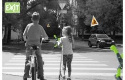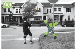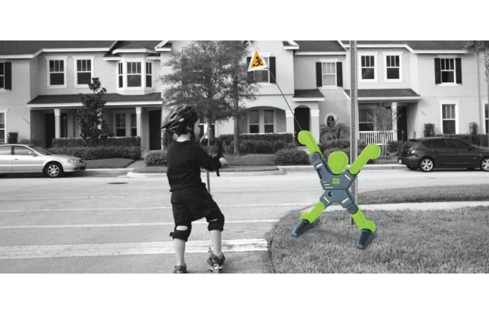 X-Man waarschuwt verkeer voor buitenspelende kinderen. Wat is er nou belangrijker dan een veilige speelplek voor je kinderen? Met de EXIT X-Man Safety Keeper kun je weggebruikers laten weten dat er spelende kinderen in de buurt zijn. De X-Man zelf is voorzien van reflecterende stickers en ook de vlag, die aan beide armen bevestigd kan worden, is volledig van zeer opvallend fluoriscerend materiaal gemaakt, met reflecterende randen. De X-Man valt daarom zelfs op als het donker is. Het verkeer is gewaarschuwd!