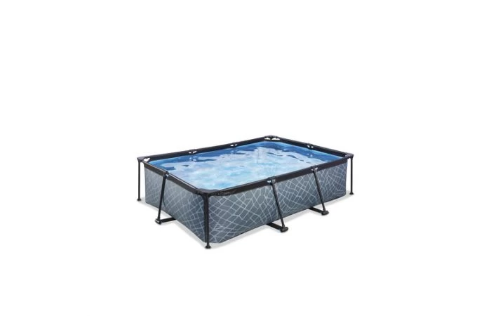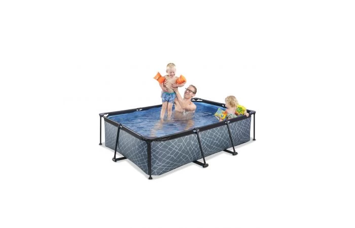 Het EXIT Stone zwembad 220 x 150 x 65 cm is een rechthoekig, grijskleurig frame zwembad. Dit compacte zwembad is standaard voorzien van een filterpomp en valt op tussen andere baden door zijn stoere steenpatroon. Ben je op zoek naar een geschikt zwembad voor jonge kinderen die niet te veel ruimte in de tuin inneemt? Kies dan voor dit unieke en hoogwaardige frame zwembad van EXIT Toys!