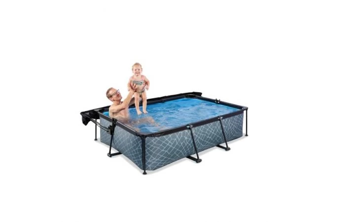 Het EXIT zwembad 220 x 150 x 65 cm is een rechthoekig, grijskleurig frame zwembad. Dit compacte zwembad is standaard voorzien van een filterpomp en schaduwdoek, die je op zomerdagen beschermt tegen de zon. Ben je op zoek naar een geschikt zwembad voor jonge kinderen die niet te veel ruimte in de tuin inneemt? Kies dan voor dit unieke en hoogwaardige frame zwembad van EXIT Toys!