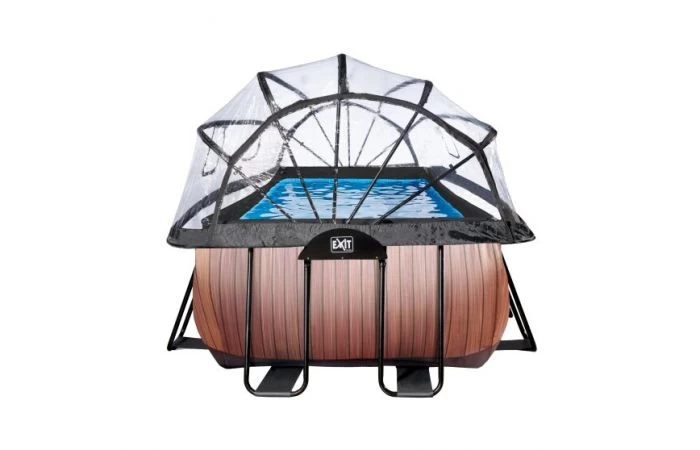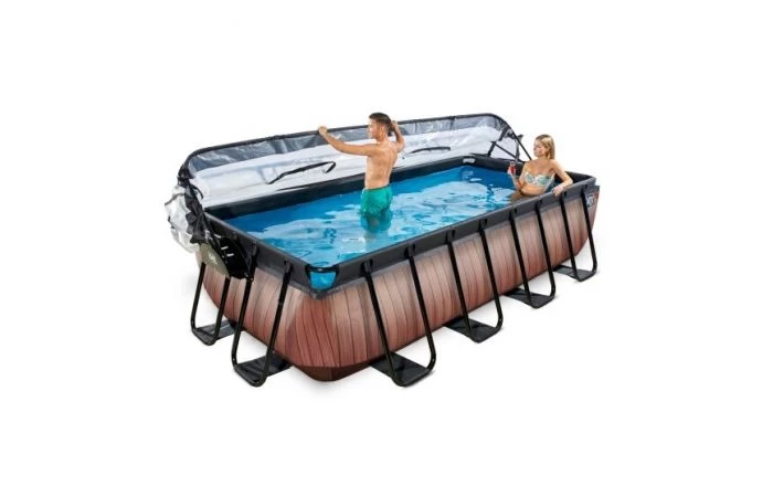 EXIT Wood zwembad 400x200x100cm met zandfilterpomp en overkapping – bruin