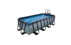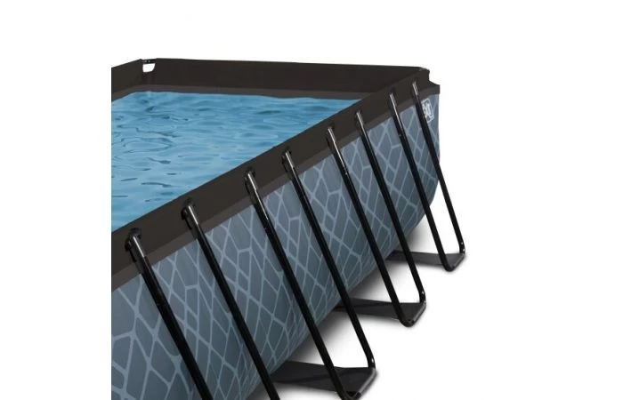 Het Stone zwembad heeft een stoer steenpatroon en is gemaakt van sterke 3-laagse wanden van polyester en PVC. Het gegalvaniseerde en zwart gepoedercoate frame voorkomt de vorming van roest.