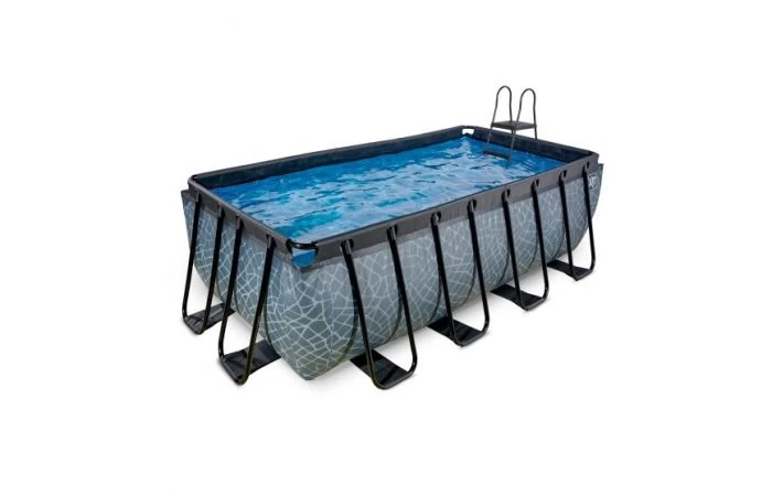 Het EXIT zwembad 400 x 200 x 122 cm is een rechthoekig, grijskleurig frame zwembad. Dit zwembad is standaard voorzien van een filterpomp en een zwembadtrap, waarmee je veilig het zwembad in en uit kunt stappen. Op zoek naar verkoeling? Het EXIT Stone zwembad is maar liefst 122 centimeter diep waardoor je echt onder water kunt duiken. Met het hoogwaardige frame zwembad van EXIT Toys beleef je gegarandeerd de leukste wateravonturen in je eigen tuin!