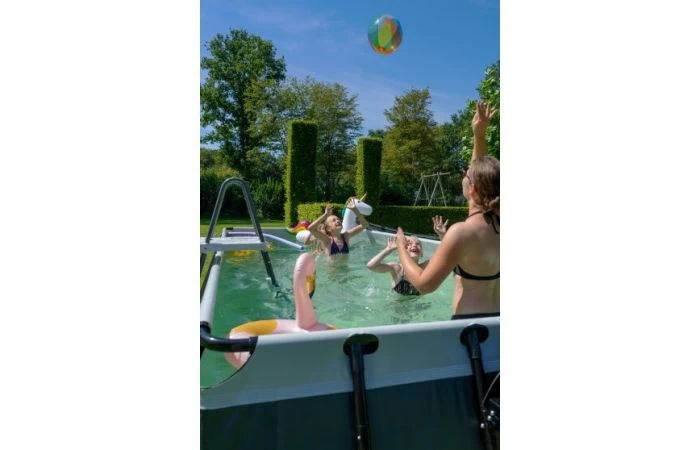 Het frame zwembad is niet alleen uniek, maar ook stabiel en sterk. Het stalen zwarte frame van het zwembad is extra dik met een diameter van 50 mm en de frame-poten zorgen voor optimale stabiliteit, zodat het zwembad altijd stevig blijft staan. Natuurlijk is er ook aan duurzaamheid gedacht: het zwarte frame is gegalvaniseerd en gepoedercoat zodat roest geen kans maakt. Het Duplex Coating Systeem noemen we dat bij EXIT Toys. Tijd voor een frisse duik in je eigen EXIT zwembad in de tuin!