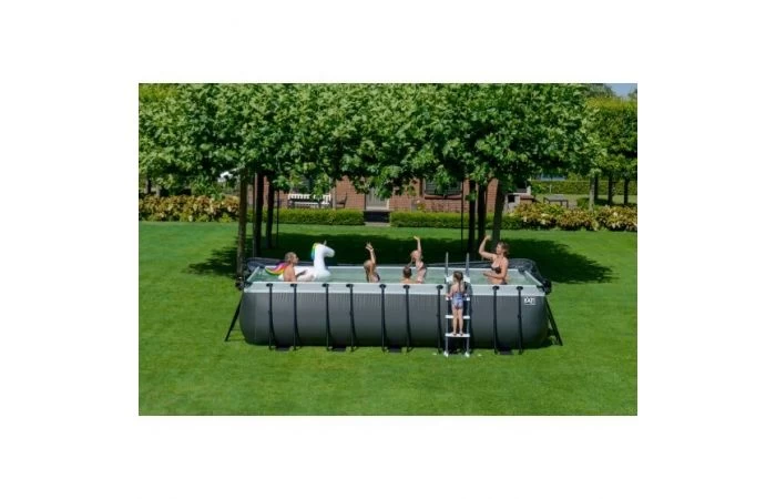 Het EXIT zwembad 540 x 250 x 122 cm is een rechthoekig frame zwembad met een zwarte leren print. Dit grote zwembad is standaard voorzien van een filterpomp en een zwembadtrap, waarmee je veilig het zwembad in en uit kunt stappen. Het frame zwembad biedt genoeg ruimte om heerlijk op een luchtbed te dobberen. En wil je toch liever onder water zwemmen? Het EXIT Black Leather zwembad is maar liefst 122 centimeter diep waardoor je echt onder water kunt duiken. Met het hoogwaardige frame zwembad van EXIT Toys beleef je gegarandeerd de leukste wateravonturen in je eigen tuin!
