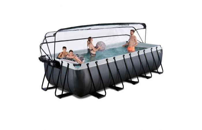 Het EXIT zwembad 540 x 250 x 122 cm is een rechthoekig grijskleurig frame zwembad met overkapping. Dit grote zwembad is standaard voorzien van een zandfilterpomp, een warmtepomp en een zwembadtrap, waarmee je veilig het zwembad in en uit kunt stappen. Het frame zwembad biedt genoeg ruimte om heerlijk op een luchtbed te dobberen. En wil je toch liever onder water zwemmen? Het EXIT zwembad is maar liefst 122 centimeter diep waardoor je echt onder water kunt duiken. De frame zwembaden met overkapping van EXIT Toys zijn multifunctioneel, duurzaam en dΓ© perfecte oplossing voor wisselvallig zomerweer!