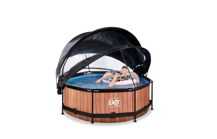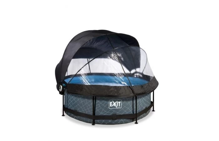 Het EXIT zwembad ø244x76cm is een rond grijskleurig frame zwembad met overkapping en schaduwdoek. Het compacte zwembad is standaard voorzien van een filterpomp en valt op tussen andere zwembaden door zijn stoere steenpatroon. Ben je op zoek naar een leuk en tegelijkertijd uniek en hoogwaardig frame zwembad in je tuin? Steel de show met de ronde zwembaden van EXIT Toys.