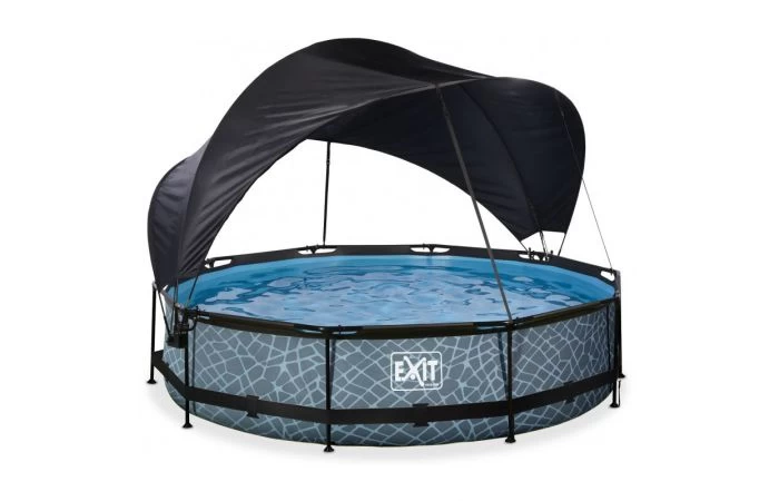 Het stoere steenpatroon en zwarte frame geven het Stone zwembad een unieke uitstraling en dankzij de natuurlijke look integreert het zwembad volledig in je tuin. De binnenzijde van het zwembad is blauw, zodat je het frisse zwembad gevoel houdt. De ronde vorm van het zwembad creëert een gezellige sfeer en zorgt ervoor dat je eenvoudig met meerdere personen plezier kunt beleven in je zwembad. Kies voor de zwembaden van EXIT Toys, een echte musthave voor in je tuin tijdens de zomer!
