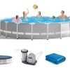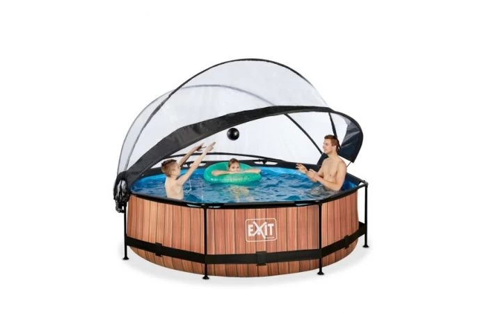 Het EXIT zwembad ø300x76cm is een rond frame zwembad met overkapping.