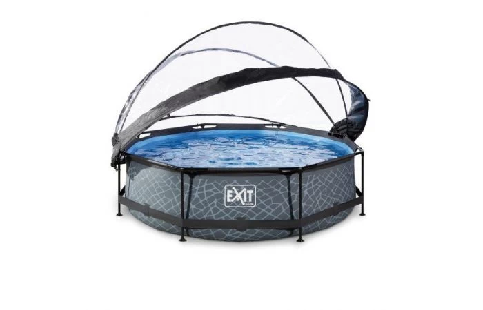 Ontdek hoe stevig een rond opzetzwembad kan zijn: het gepoedercoate stalen frame en de sterke poten van het EXIT Stone zwembad zorgen ervoor dat het bad altijd stabiel staat en jarenlang meegaat. De meegeleverde filterpomp houdt het water schoon en in beweging zodat vervuiling van het water wordt tegengegaan. De filterpomp kan eenvoudig aan het zwembad worden gemonteerd en door middel van filtercartridges wordt het water ververst. In het EXIT Stone zwembad neem je altijd een frisse duik!