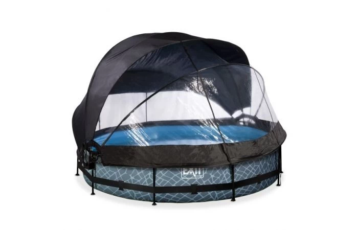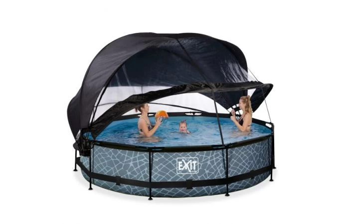 Het EXIT zwembad ø360x76cm is een rond frame zwembad met overkapping en schaduwdoek. Het zwembad is standaard voorzien van een filterpomp en valt op tussen andere zwembaden door zijn stoere patroon. Ben je op zoek naar een leuk en tegelijkertijd uniek en hoogwaardig frame zwembad in je tuin? Steel de show met de ronde zwembaden van EXIT Toys!