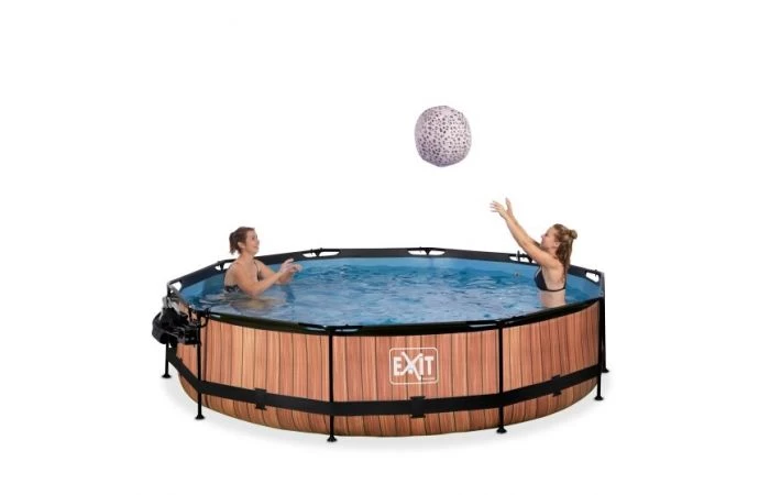 Ontdek hoe stevig een rond opzetzwembad kan zijn: het gepoedercoate stalen frame en de sterke frame-poten van het EXIT Wood zwembad zorgen ervoor dat het bad altijd stabiel staat en jarenlang meegaat. De meegeleverde filterpomp houdt het water schoon en in beweging zodat vervuiling van het water wordt tegengegaan. In het EXIT Wood zwembad neem je altijd een frisse duik!