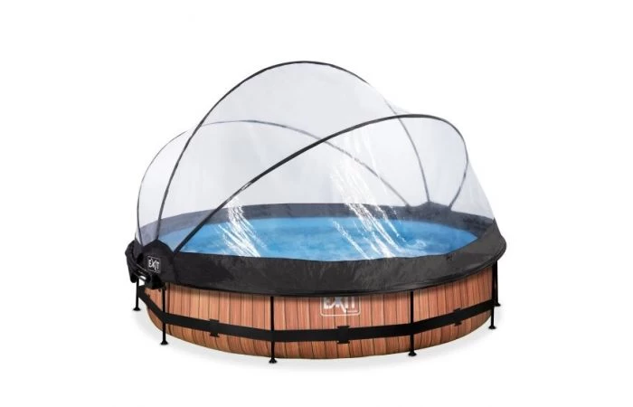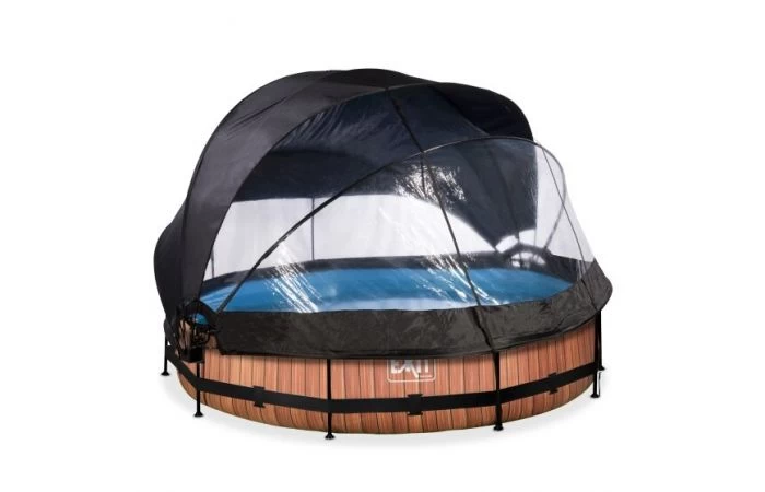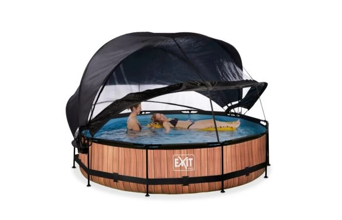Het stoere houtpatroon en zwarte frame geven het Wood zwembad een unieke uitstraling en dankzij de natuurlijke look integreert het zwembad volledig in je tuin. De binnenzijde van het zwembad is blauw, zodat je het frisse zwembad gevoel houdt. De ronde vorm van het zwembad creëert een gezellige sfeer en zorgt ervoor dat je eenvoudig met meerdere personen plezier kunt beleven in je zwembad. Kies voor de zwembaden met overkapping van EXIT Toys, een echte musthave voor in je tuin tijdens de zomer!