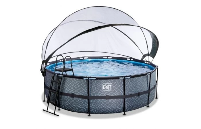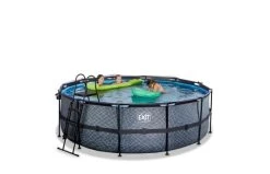 Het EXIT zwembad ø427 x 122 cm is een rond, grijskleurig frame zwembad met overkapping. Het zwembad is standaard voorzien van een zandfilterpomp, warmtepomp en een zwembadtrap, waarmee je veilig het zwembad in en uit kunt stappen. Door de grote diameter van het zwembad is er genoeg ruimte om heerlijk op een luchtbed te dobberen. En wil je toch liever onder water zwemmen? Het EXIT Stone zwembad is maar liefst 122 centimeter diep waardoor je echt onder water kunt duiken. Met het hoogwaardige frame zwembad van EXIT Toys beleef je gegarandeerd de leukste wateravonturen in je eigen tuin!
