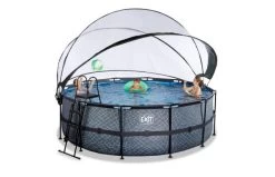 Het EXIT zwembad ø427x 122 cm is een rond grijskleurig frame zwembad met overkapping. Het zwembad is standaard voorzien van een zandfilterpomp en een zwembadtrap, waarmee je veilig het zwembad in en uit kunt stappen. Door de grote diameter van het zwembad is er genoeg ruimte om heerlijk op een luchtbed te dobberen. En wil je toch liever onder water zwemmen? Het EXIT Stone zwembad is maar liefst 122 centimeter diep waardoor je echt onder water kunt duiken. Met het hoogwaardige frame zwembad van EXIT Toys beleef je gegarandeerd de leukste wateravonturen in je eigen tuin!
