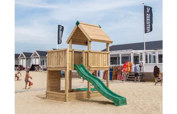 Gecertificeerd voor commercieel gebruik en compact, het ideale houten speelhuis voor scholen, een kleine kinderopvang of vakantiepark met beperkte ruimte of budget.
