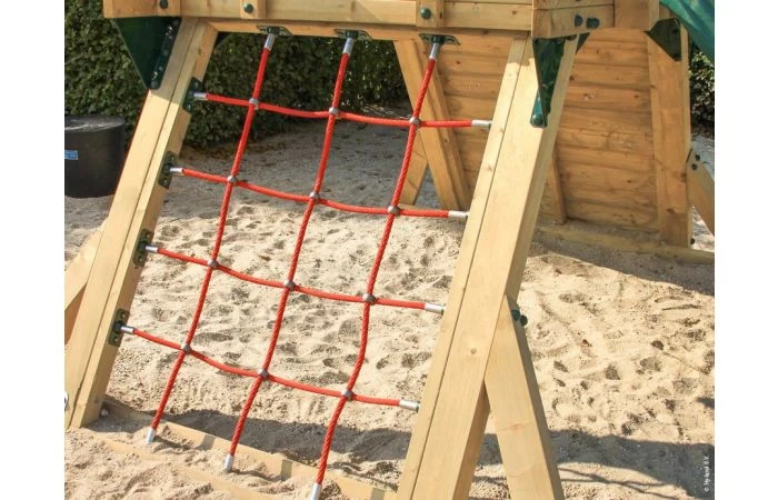 De speeltoestellen moeten volgens de Europese Standaard op een valdempende ondergrond geplaatst worden, bijvoorbeeld rubberen tegels. Voor het veilig plaatsen van het toestel op een niet verharde ondergrond, raden wij u 3 Anchor Sets aan. U vindt de Anchor Sets onder Bijpassende producten.