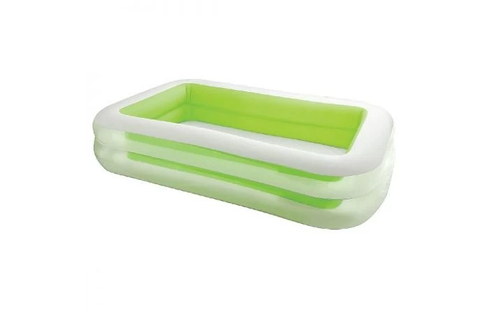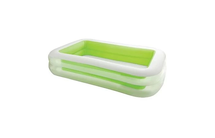 Groen familiezwembad. Met twee luchtkamers, elk met combo ventiel voor het snel oppompen en leeg laten lopen van het zwembad.
