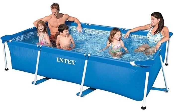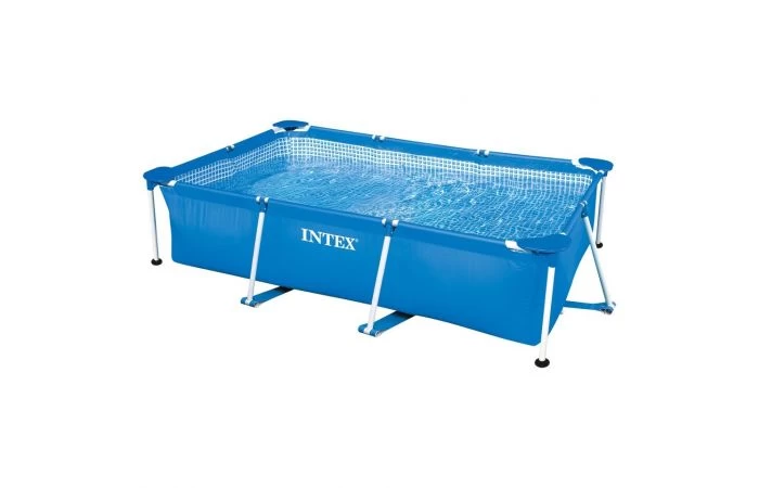 Dit Intex Frame zwembad is zeer eenvoudig en binnen 30 minuten te plaatsen. Het zwembad is ideaal voor op een rechthoekige terras. Dit zwembad is van hoogwaardige kwaliteit en heeft een zeer stevige constructie voorzien van een robuuste, gecoate metalen frame met een gerasterde polyester binnenlaag met aan beide zijden een dikke, duurzame PVC buitenlaag. Daarnaast is het zwembad voorzien van een handige leegloopventiel, waar eenvoudig een tuinslang op kan worden aangesloten. Dit rechthoekige zwembad heeft kindvriendelijke ronde hoeken, dit zijn niet alleen stabiele bevestigingspunten maar ook praktische plateaus om uw drinken op te zetten als u heerlijk in het zwembad of op uw luchtmatras ligt te ontspannen.