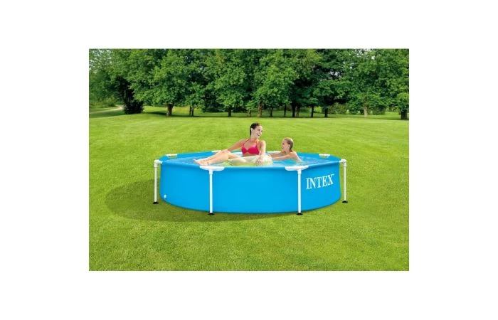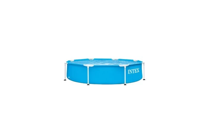 Intex Metal Frame Pool, met hoge kwaliteit liner en sterk metalen frame. Gecombineerd met het mooie uiterlijk en de eenvoudige manier van opzetten garandeert het vele jaren zwemplezier voor u en uw gezin. Super-Tough zijwanden zijn 3 maal zo sterk. Ze zijn gemaakt uit 3 afzonderlijke lagen voor extra versteviging en een langere levensduur. Rond het zwembad loopt een gelamineerde verstevigingsband voor extra steun aan de zwembadwand. Inclusief handige aansluiting voor de tuinslang, zodat het bad snel en eenvoudig leeg te laten lopen is in een afvoer.