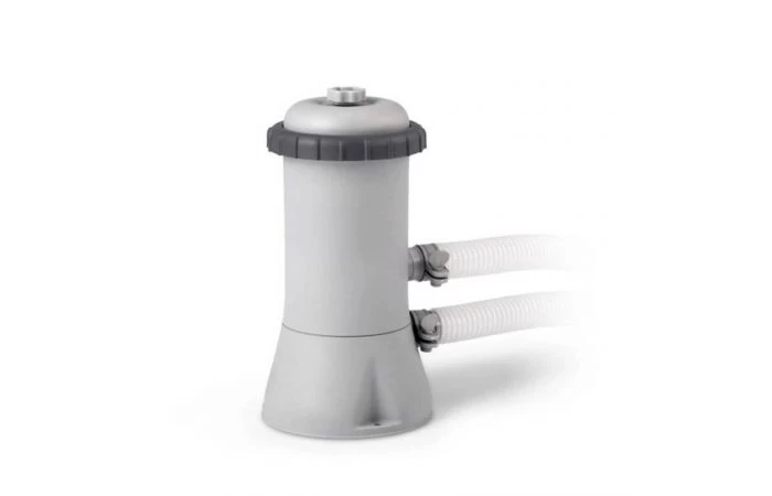 Framebad met roestbestendig metalen frame: 366 x 76 cm. Vervaardigd van 2 lagen zware kwaliteit PVC met gerasterde nylonpolyester tussenlaag. De pomp heeft een doorloopsnelheid van 2271 liter per uur.