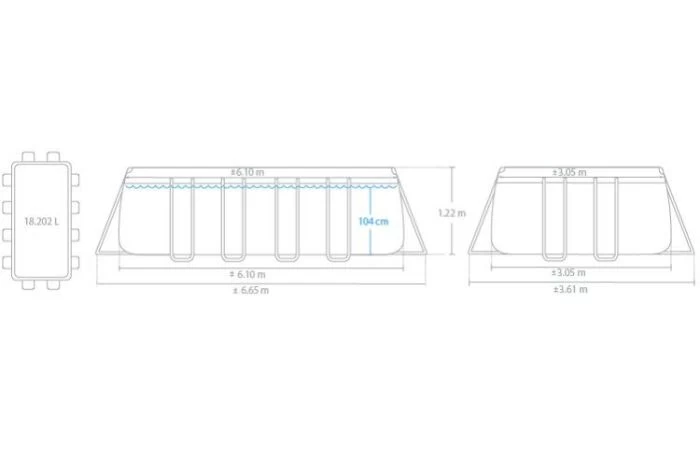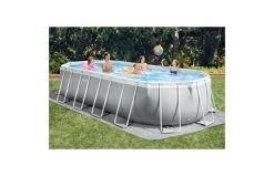 Deze ovalen Intex Prism Frame Premium zwembad is de opvolger van de Oval Frame Pool. Met dank aan de ovalen vorm is dit zwembad ideaal om baantjes te trekken en door zijn afmetingen (610 x 305 x 122 cm) geschikt voor ca. 8 personen. Bij aankoop van deze Prism Frame ontvang je ook alle bijbehorende accessoires: een bijpassende filterpomp, een grondzeil, een afdekzeil en een praktische ladder.Â
