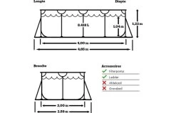 Dit zwembad wordt geleverd met een krachtige filterpomp met een capaciteit van 2271 liter per uur en bevat alle bijbehorende koppelstukken en slangen om het te kunnen koppelen aan uw zwembad. Deze filterpomp filtert d.m.v. filtercardridges van het type A. Deze filters dienen minstens eens in de twee weken vervangen te worden en bij extreem warm weer wekelijks. Deze filterpomp is gemaakt om maximaal 4 uur per dag te draaien. Wij adviseren om de pomp 2 uur ’s ochtends en 2 uur ’s avonds in te laten schakelen. Dit kunt u instellen doen met een timer, welke te koop is bij iedere bouwmarkt. Belangrijk is dat de pomp in ieder geval is ingeschakeld na elke toevoeging van chemicaliën (chloor en pH middelen).