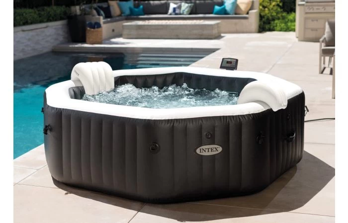 Met de Jet & Bubble Deluxe van Intex haalt u een kwalitatief hoogwaardige jacuzzi in huis. Met deze opblaasbare jacuzzi komt u helemaal tot rust dankzij de massagestralen en het warme water. In 30 minuten blaast u hem op en vult u hem met water. Het water kan heerlijk op temperatuur gebracht en gehouden worden met de ingebouwde verwarming.