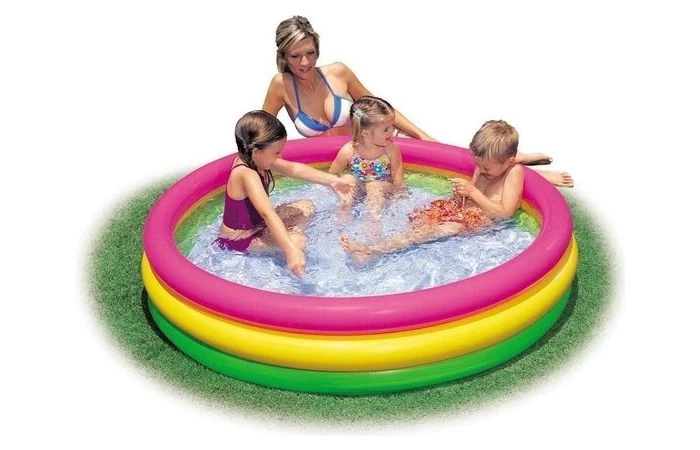 Intex Sunset Glow Pool is een mooi 3-rings opblaasbadje met een afmeting van 147x 33 cm.
