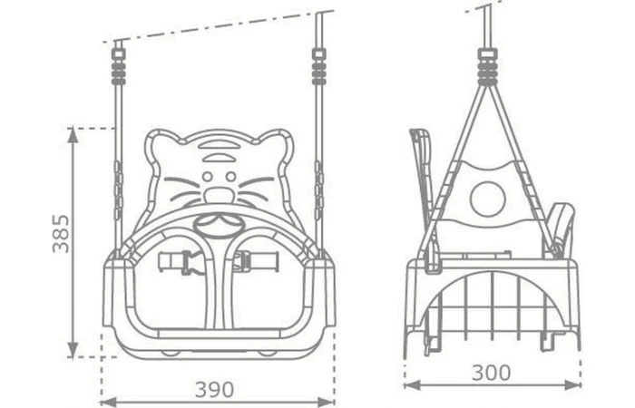 Het unieke babyzitje ‘Trix’ van KBT groeit met het kind mee van babyzitje tot gewoon schommelzitje, door de voorste T-bar te verwijderen en later ook het achterstuk. Het bevat een veiligheidsgordel met gesp die veilig dichtgeklikt kan worden. De ringen en stelachten zijn vervaardigd in gegalvaniseerd staal. De lassen op de touwen bestaan uit zwart PP. Het babyzitje ‘Trix’ wordt plat verpakt geleverd.
