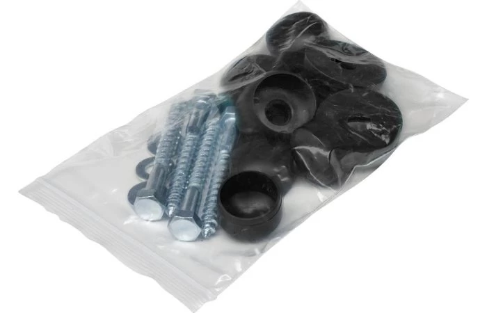 Bevestigingset voor duikelstang – schroeven, ringen en afdekdoppen – zwart